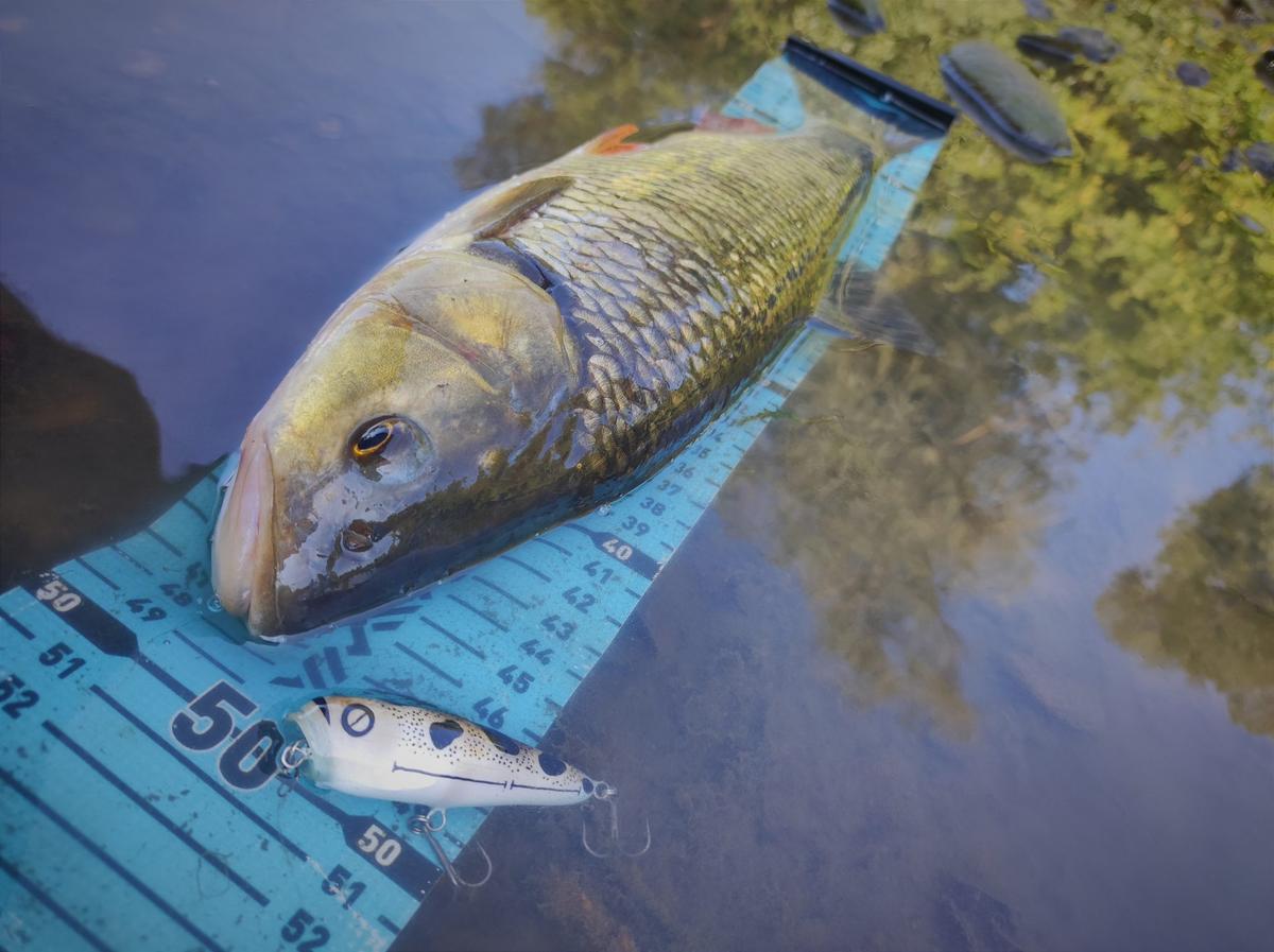 Aztán tavaly úgy hozta a sors, hogy egész nyáron heti több alkalommal a környéken volt dolgom, és júniustól szeptemberig, rendszeresen látogattam meg a folyót. Egyedül, egzakt tanácsok nélkül indultam neki a véget nem érő gázolásoknak, és a fogott halak mérete egyre csak nőtt és nőtt. Az első pecán boldogan pózoltam a harmincasokkal, majd hamar elkezdtek jönni a 48-49 centis nagyok. Az egyik estéről már írtam egy bejegyzést (https://halbogarlures.hu/2021/07/09/ket-rekord-egy-este-alatt/).