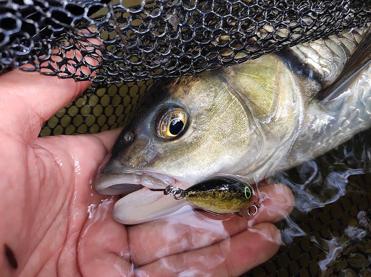 A szessön nehezen indult, egy-két sablonhal és meg nem akadó szebbecske után a jól bevált szpotokon sem tudtam akciót elérni. Pedig láttam pár nagyot, ahogy az oldalukat villogtatják a mélyebb gödrökben. Telt múlt az idő, és egy jobbacska csak ráragadt az új popperre. Rendben, működik.