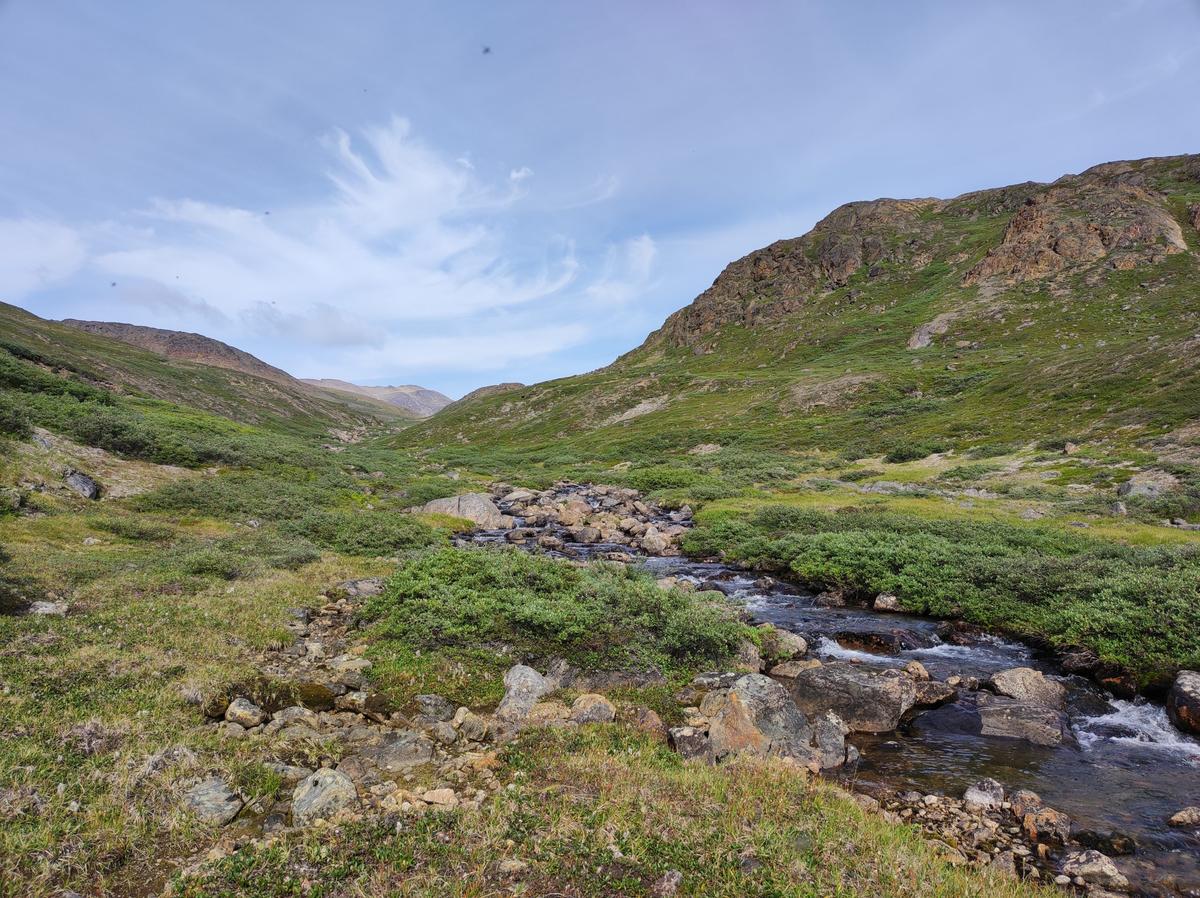 Keservesen lassan haladtunk. Hosszú, egyenletes emelkedő vezetett a hegycsúcs felé, majd egy nagyobb patakon átkelve a platón elterülő tó mellett vezetett utunk. Órák óta meneteltünk, követve a kőrakásokat, amik az útvonalat jelölték.