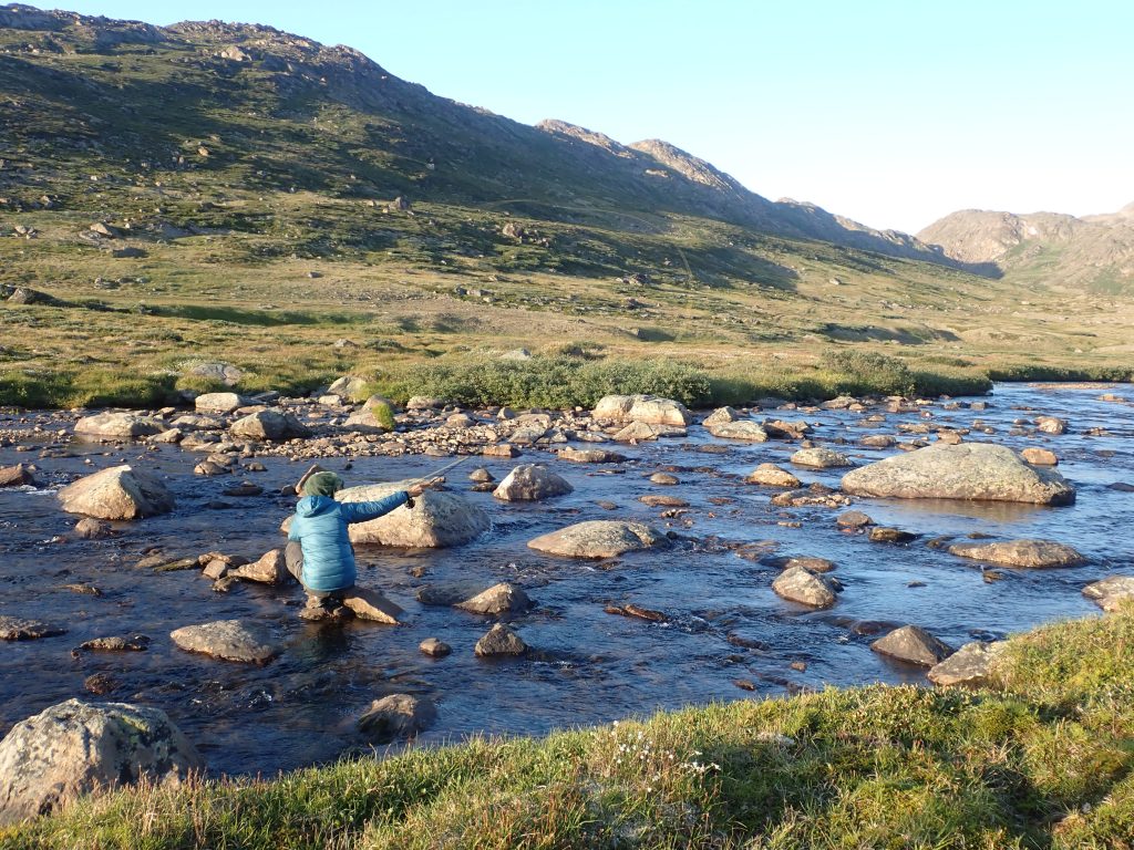A borzasztóan drága repülőjegy vásárlás után már nem volt visszaút, elkezdődött a tervezgetés. Először is meg kellett tanulnom legyezni. Két bosnyák túra és pár ipolyi peca meggyőzött arról, hogy menni fog. Noha előbb fogtam szép halakat műléggyel, minthogy megtanultam volna tisztességesen dobni. Közben a légykötés művészetével is ismerkedtem, ami nem is áll távol jelenlegi munkámtól a wobblerkészítéstől. Ahogy közeledett az út időpontja, úgy néztem egyre több netes videót Grönlandról és olvastam cikkeket az országról és célhalunkról az arctic charról, azaz a sarki szajblingról (Salvenlius alpinus). Ez a pisztrángféle alapvetően tengeri halfaj, melynek négy évnél idősebb egyedei édesvízben, sekély folyókban ívnak. Az ívás befejeztével általában visszatérnek a tengerbe, ám némelyik kifejlett hal és az ivadékok a patakokban, folyókban és a tavakban is maradhatnak. A nagyobb, szaporodásra készülő hímek feltűnő nászruhát öltenek, miután megérkeznek az ívóhelyekre, felső álkapcsuk kampós lesz, erős fogakat növesztenek. A 60-70 cm-es halak már nagynak számítanak.