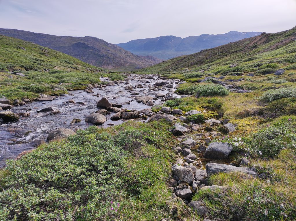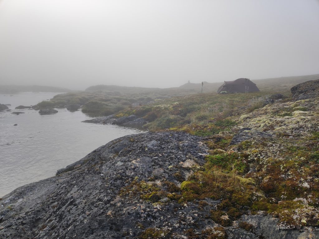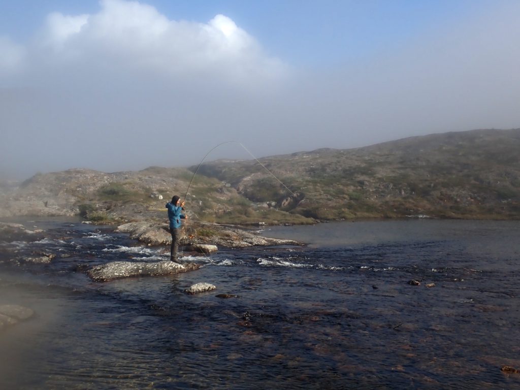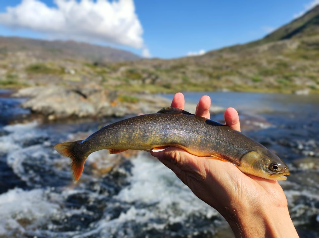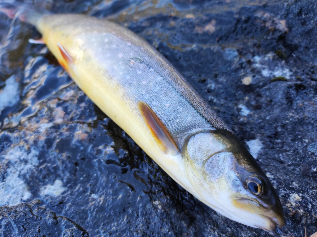 Másnap tejköd fogadott, ahogy kinéztem a sátorból. A nap még nem tudott áthatolni a szűk folyóvölgy párarétegen. Bóklásztam kicsit a környéken, visszafeküdtem olvasni. Aztán a reggeli zabkása után megbeszéltük, hogy déltájt visszaindulunk. De előtte azért összeraktam a legyezőbotot, és szárazlegyet – egy lószúnyogot és a „kis zöldet”– dobtam egy nagyobb poolba a parti köveken egyensúlyozva. Szűk harminc centiméter hosszú, vékony, sárgahasú charok akadnak a horogra. Állandó lakosok, nem vándorló, hanem rezidens halak. Nincs is sok, nem is nőnek nagyra, viszont ez a harmadik folyó, ahol halat fogok. Felvillanyozott az a pár hal a keserves visszaindulás előtt.