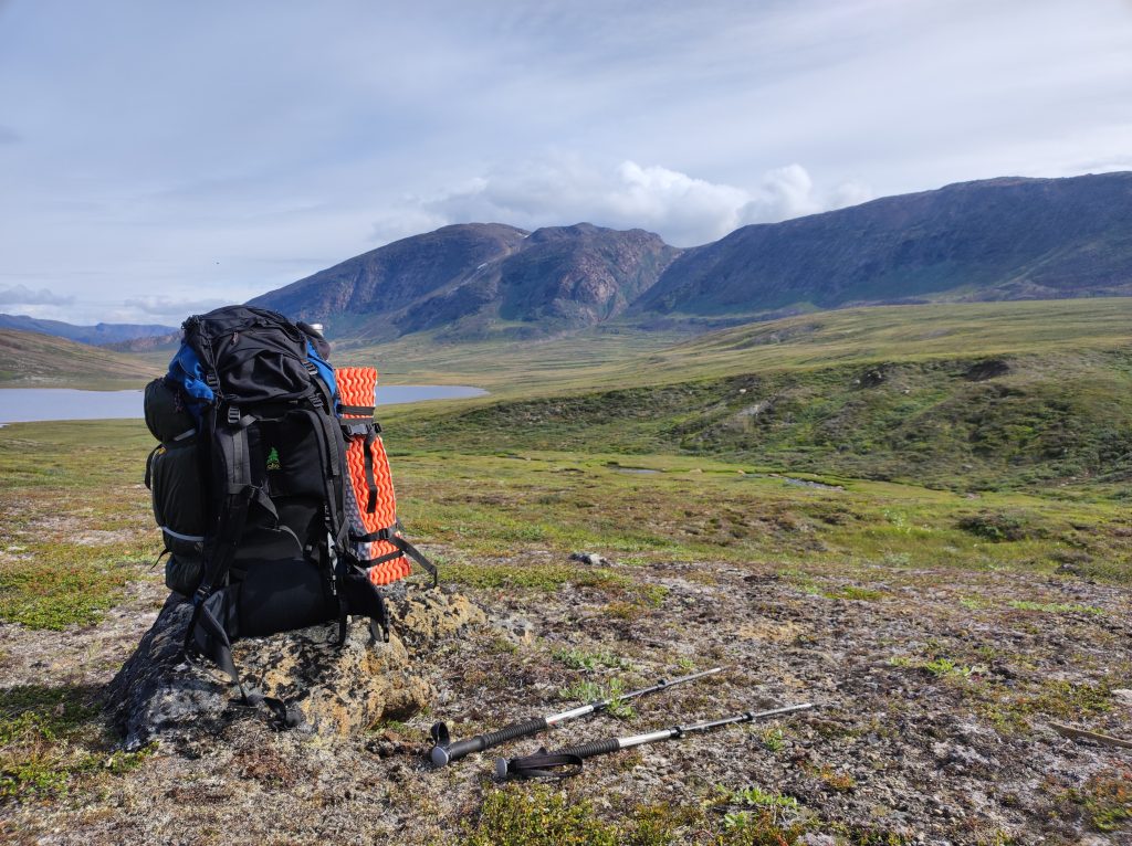 A visszaút kezdetben gyorsabban, majd egyre lassabban ment. Eleinte 40, majd 30, majd 10 percenként megálltam, egyre hosszabb időre. A hágóig én háromszor, Pé egyszer pihent meg. A feltört sarkam, a bosszantó náthám és a három napja tartó értelmetlen gyaloglás felőrölt. Itthon derült ki, hogy nem a bakancs törte fel a sarkam túra felénél, hanem begyulladt, ödémás lett az achillesem, még most is bicegek, pedig napok óta itthon vagyok. Éppen társamat videóztam, ahogy az alattam elterülő völgyet szeli át, kb. 800 méterre tőlem, amikor két nagy madár repült fölénk. Nálunk is élő, fehérfejű rétisasok (Haliaeetus albicilla). Grönlandról egy fészkelő pár ismert, talán őket láttuk. Méltóságteljesen keringtek fölöttem. Pé egy órával előbb ért vissza, már sátrat vert mire beestem fölöslegesen megcsalt helyünkre. De este már horgásztam. A GPS szerint mindössze 10 km-t tettem meg aznap. Öt-hat óra alatt. A hágó 85 méterről 340 méterig emelkedett. Nevetséges távok.