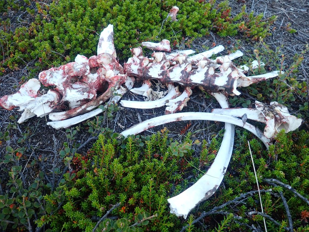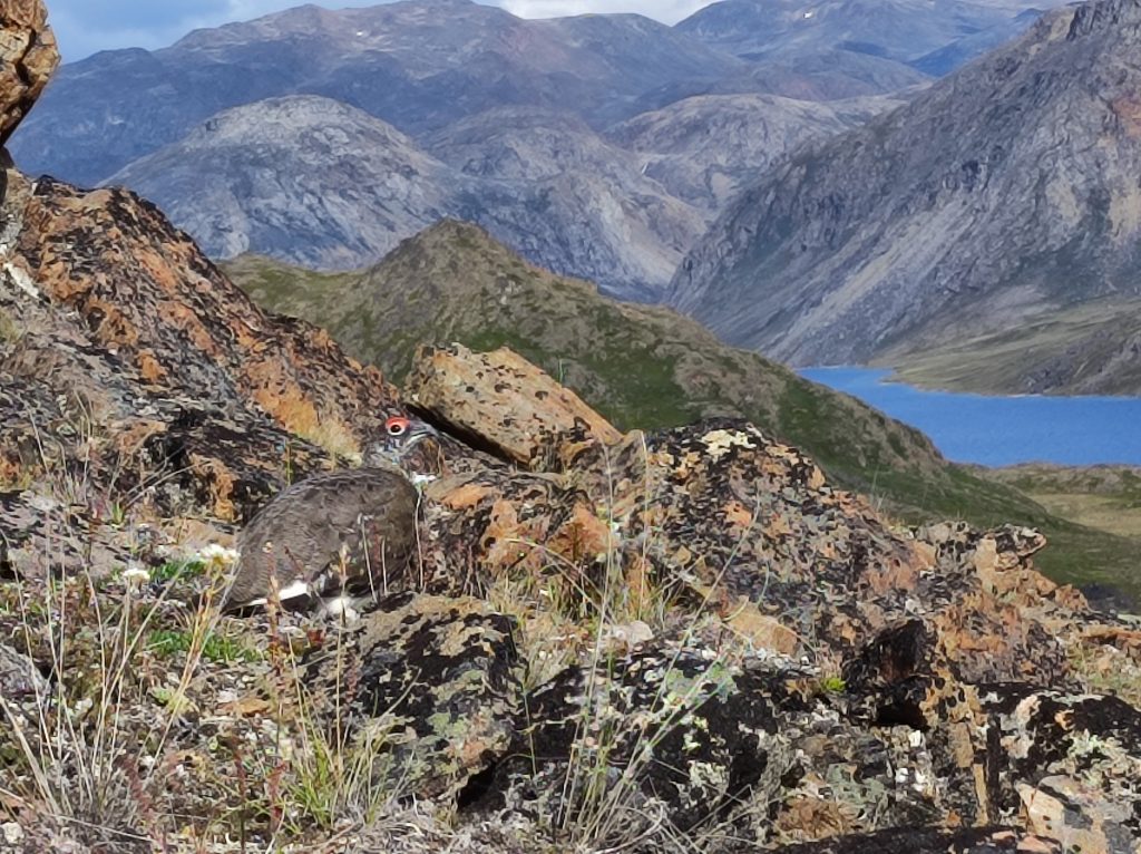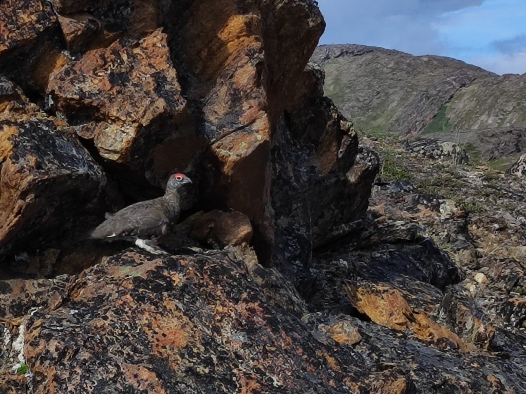 Lépten-nyomon rénszarvasagancsba botlottunk. Vadászok áldozatainak maradéka, csontok, szőrfoszlányok mindenfelé. A hágó meredek sziklafalán, kézzel-lábbal kapaszkodva tudtunk átjutni. Nem volt jó. Botorkálásunk sokadik órájában végre megláttuk az alattunk elterülő tavat, partján néhány kenuval. Lefelé baktatva előttem megmozdult egy kő. Majd még kettő. A sarki hófajdok (Lagopus muta) tökéletes rejtőszínüknek köszönhetően annyira beleolvadtak a környezetükbe, hogy szinte rájuk léptem. A fején piros tollakkal díszített kakas izgatottan durrogott, míg a két tojó lassított felvételként távolodott tőlem. Pár méteres közelségbe engedtek néhány fénykép erejéig.