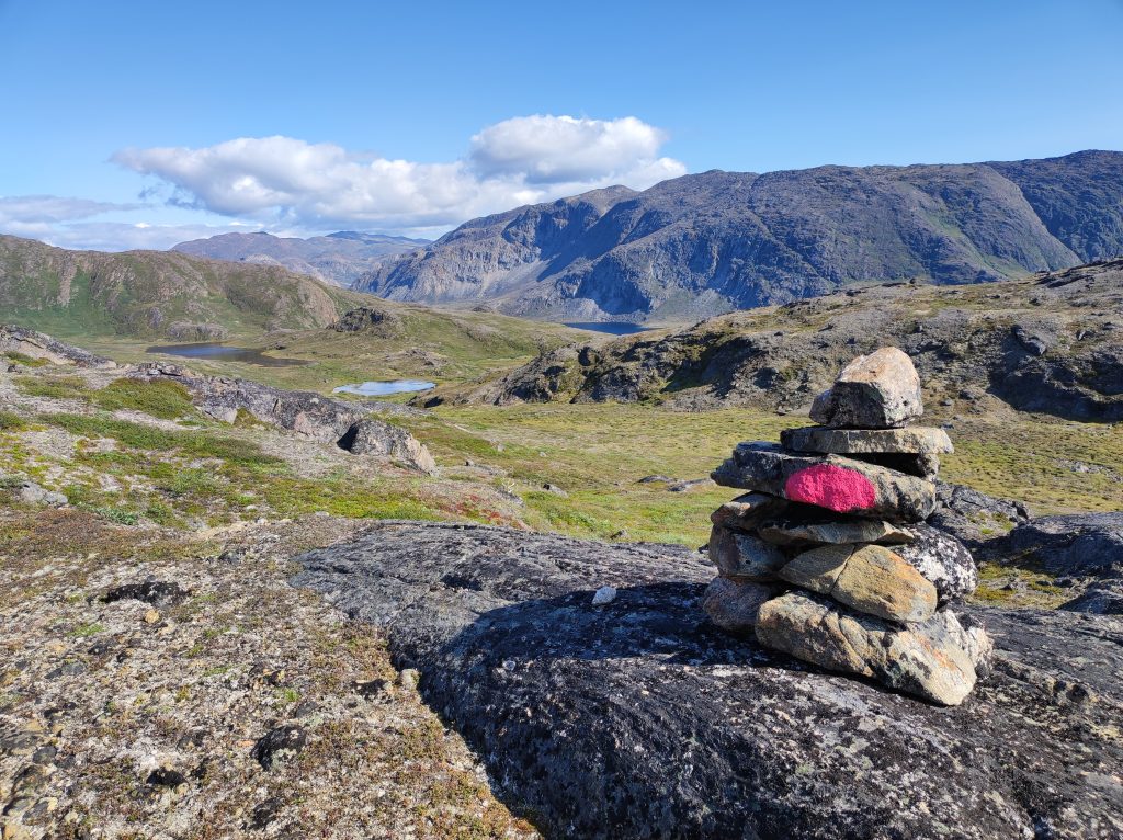 Keservesen lassan haladtunk. Hosszú, egyenletes emelkedő vezetett a hegycsúcs felé, majd egy nagyobb patakon átkelve a platón elterülő tó mellett vezetett utunk. Órák óta meneteltünk, követve a kőrakásokat, amik az útvonalat jelölték. Pé edzettebb volt, sokkal jobban bírta. Neki elég volt 30-40 percenként megállni, olyankor bevárt, de tudott volna gyorsabban menni Az egész út során szinte egyedül haladtam, hiszen általában az első-második megálló után eltávolodott tőlem. Nem igazán tudtam/akartam (?) sietni. A rendszeres megállásokkor levettem a táskát, egy darabig száradtam. Aztán az ücsörgés alatt felvettem a tollkabátom, amikor már fázni kezdtem. A kabát átszívta az izzadságot, a merinói gyapjú aláöltözet így gyorsabban megszáradt a hűvös szélben, és szinte száraz hátra vehettem vissza nehéz terhemet. Ez jó módszernek bizonyult, kellően regenerálódtam a pihenők alatt, igaz egyre rövidebb időkre töltődtem fel.