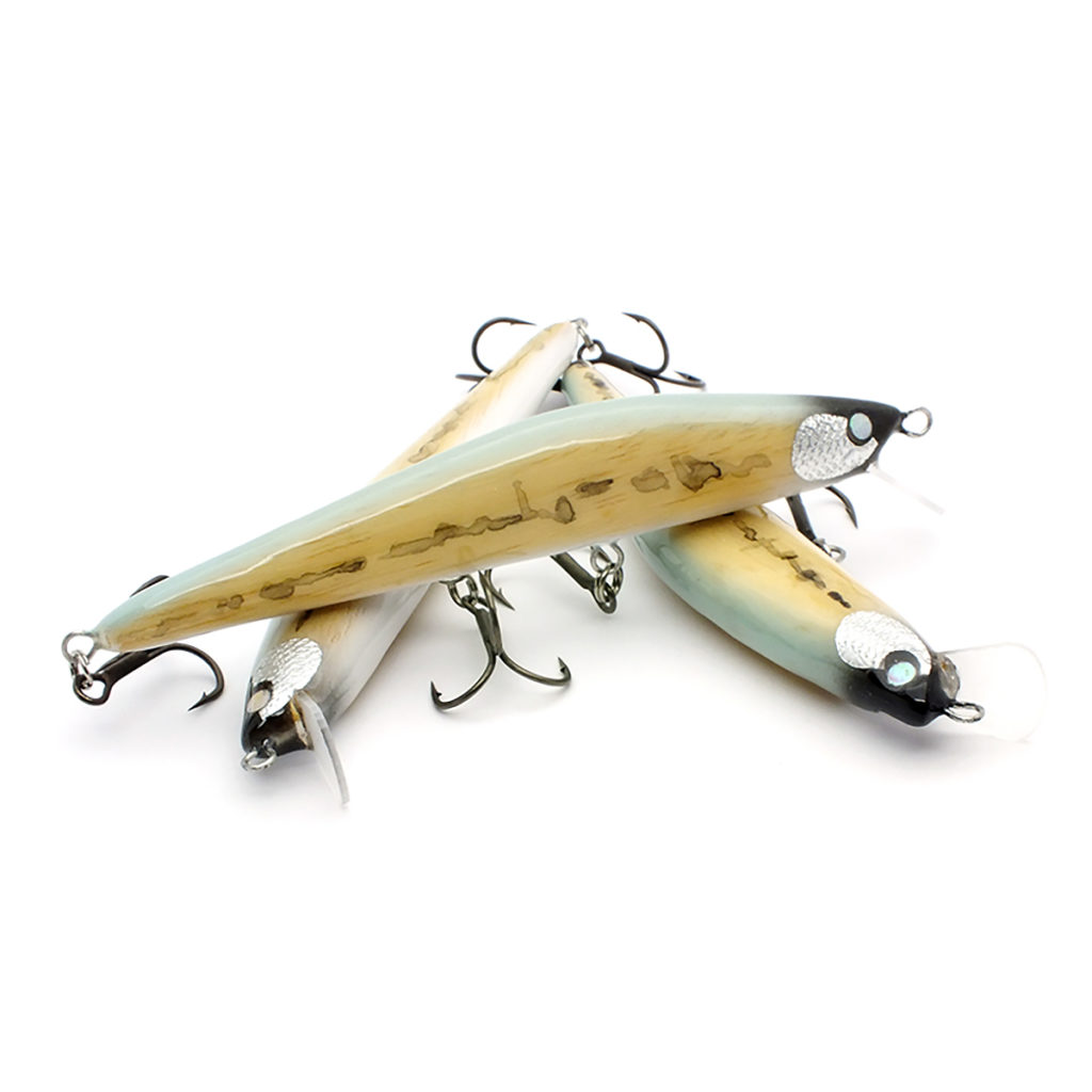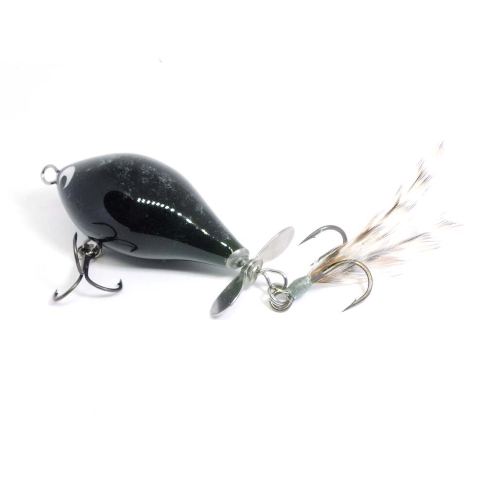 Propesszor. Abachifából készült felszíni prop-bait. A fém propeller fröcsögve pörög bevontatáskor, míg a fácántollból kötött farok jelet húz a felszínen. A világból kilehet dobni, és nincs az a nagyragadozó, amiből ne váltana ki valamilyen reakciót. A fekete test hátán lumineszkáló festéssel